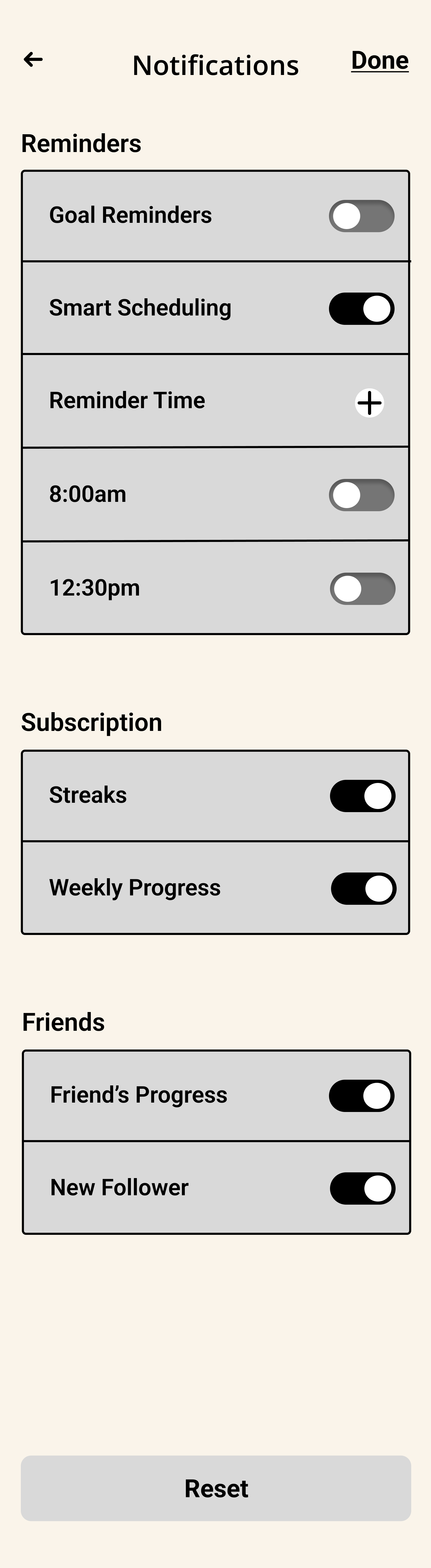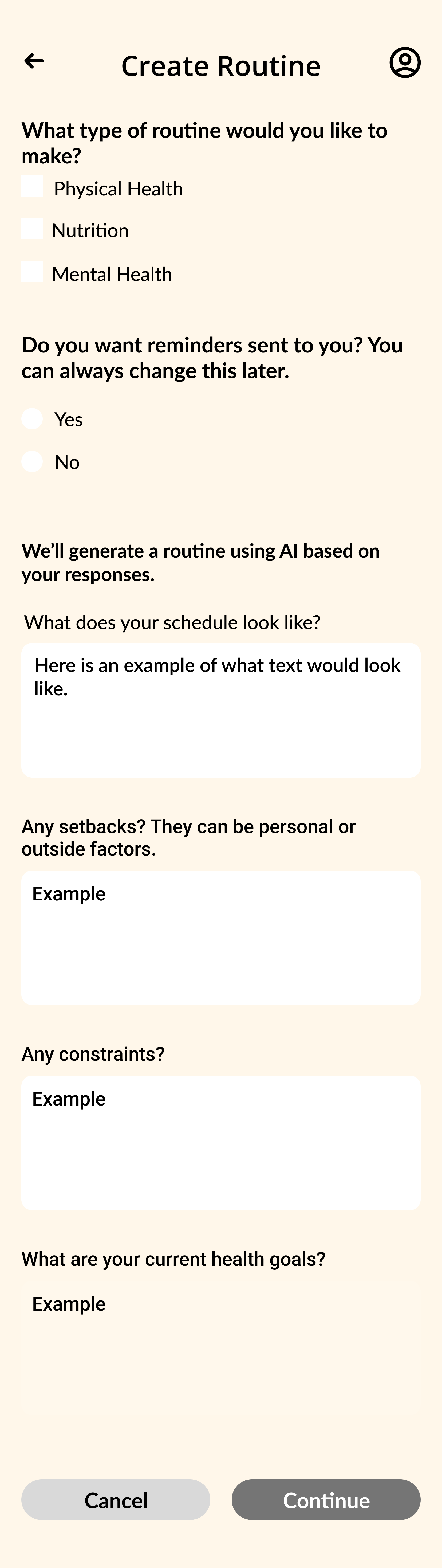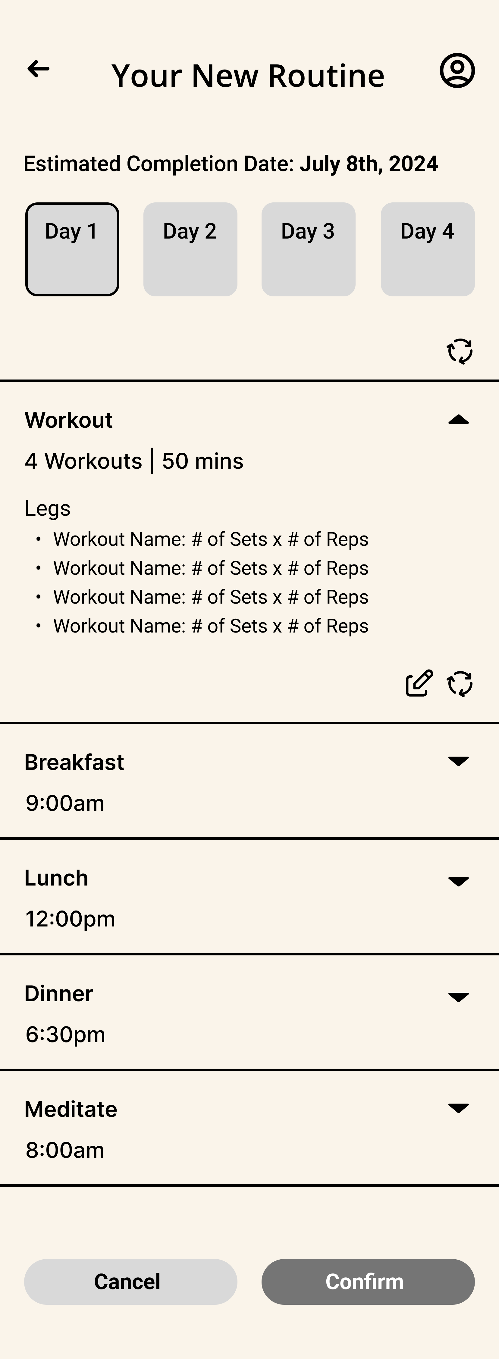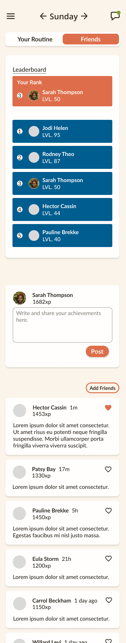 Based on feedback, I replaced the '+' icons with checkboxes, allowing users to mark tasks as complete within their daily routine.